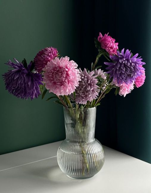 Астры неприхотливы и выносливы, что объясняет способность букета из астр простоять в вазе 10-14 дней. Чтобы продлить жизнь такого букета, следует сразу срезать нижние листочки и не забывать вовремя менять воду. Чтобы астры простояли в букете максимально долго, можно добавить в воду немного сахара (идеальный вариант - половина чайной ложки сахара, которая приходится на один литр воды);