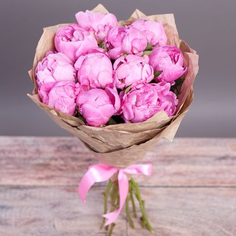 ТипбукетВысота30 смДиаметр15 смВид цветовпионЦветрозовый