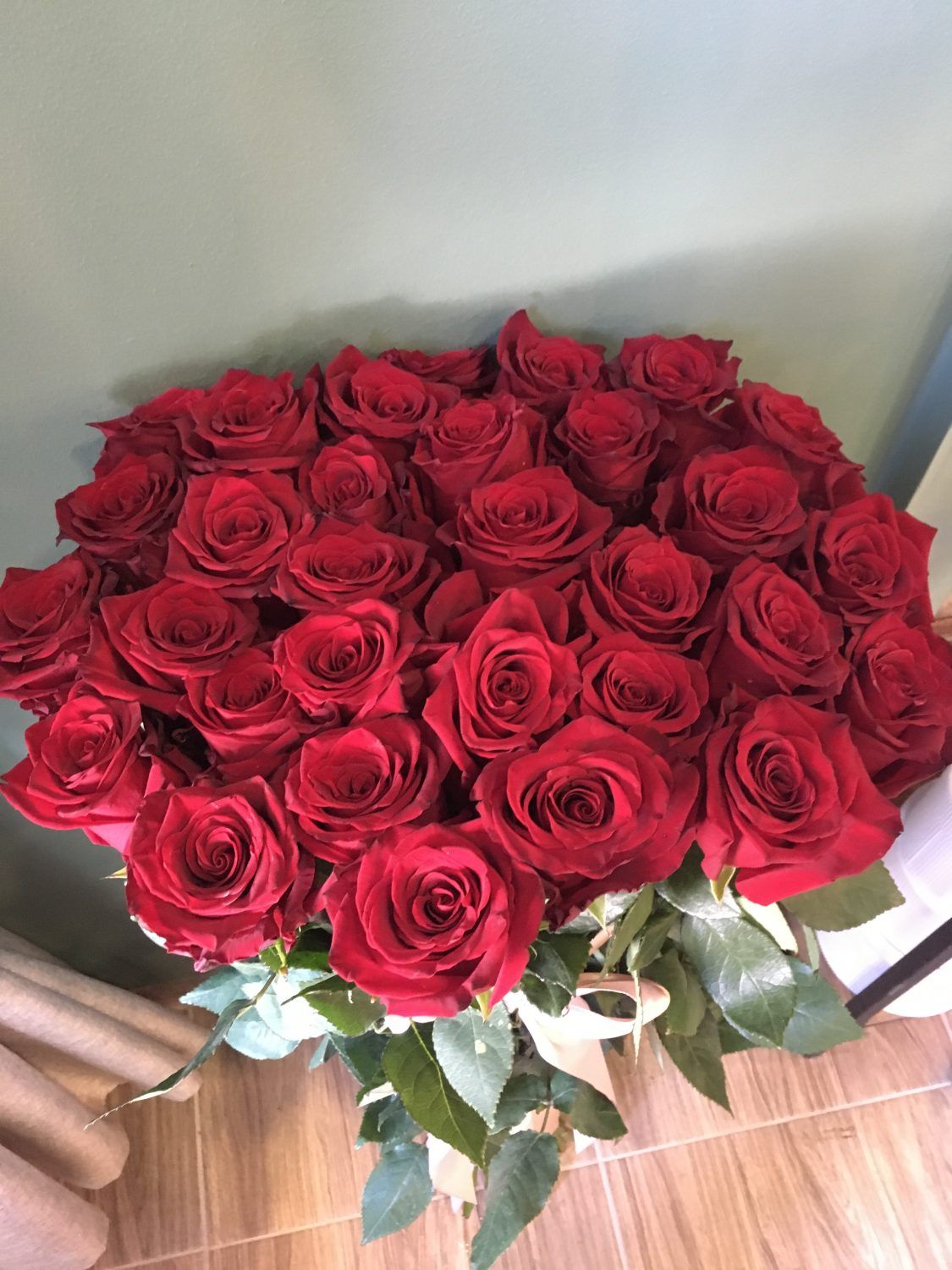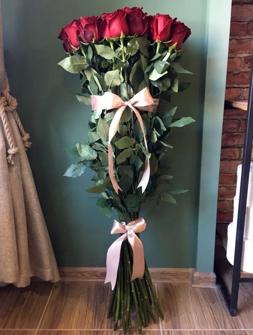 Состав: роза эквадор 80 см - 31 шт, лента.