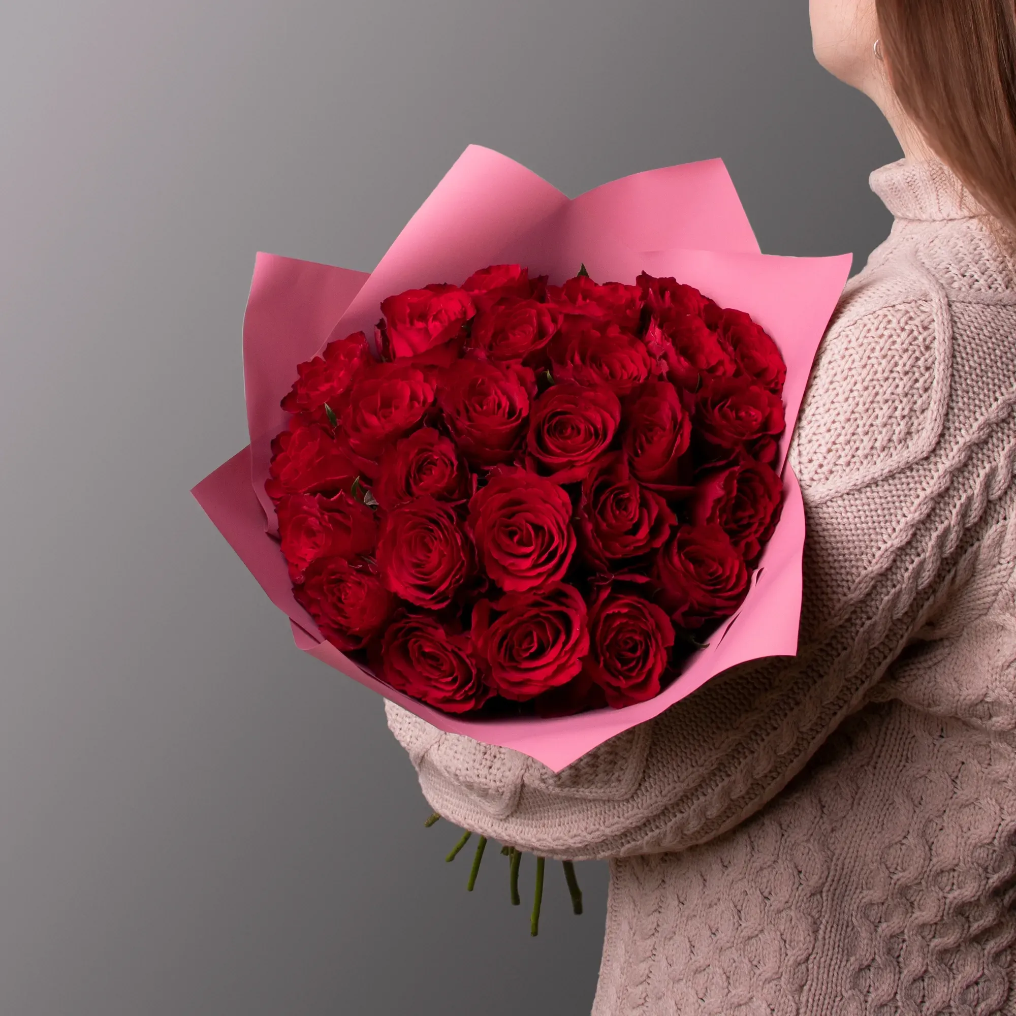 Состав: роза 40 см - 25 шт, упаковка, лента. -