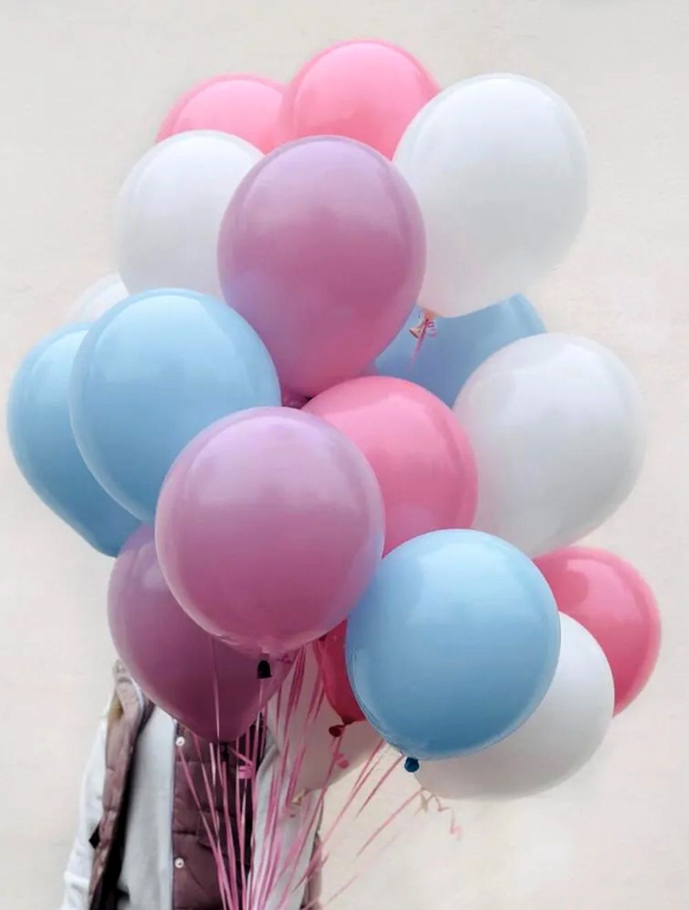 Состав: 25 латексных воздушных шаров в пастельных оттенках: голубые, розовые, белые и сиреневые.