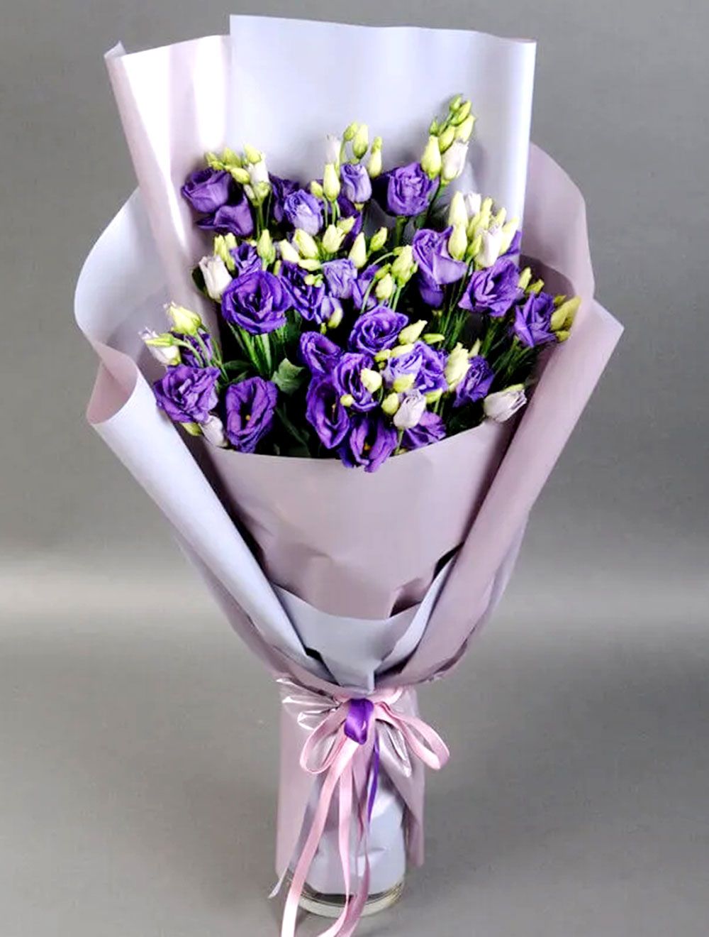 Состав: эустома (лизиантус) синий - 9 шт, упаковка, лента.