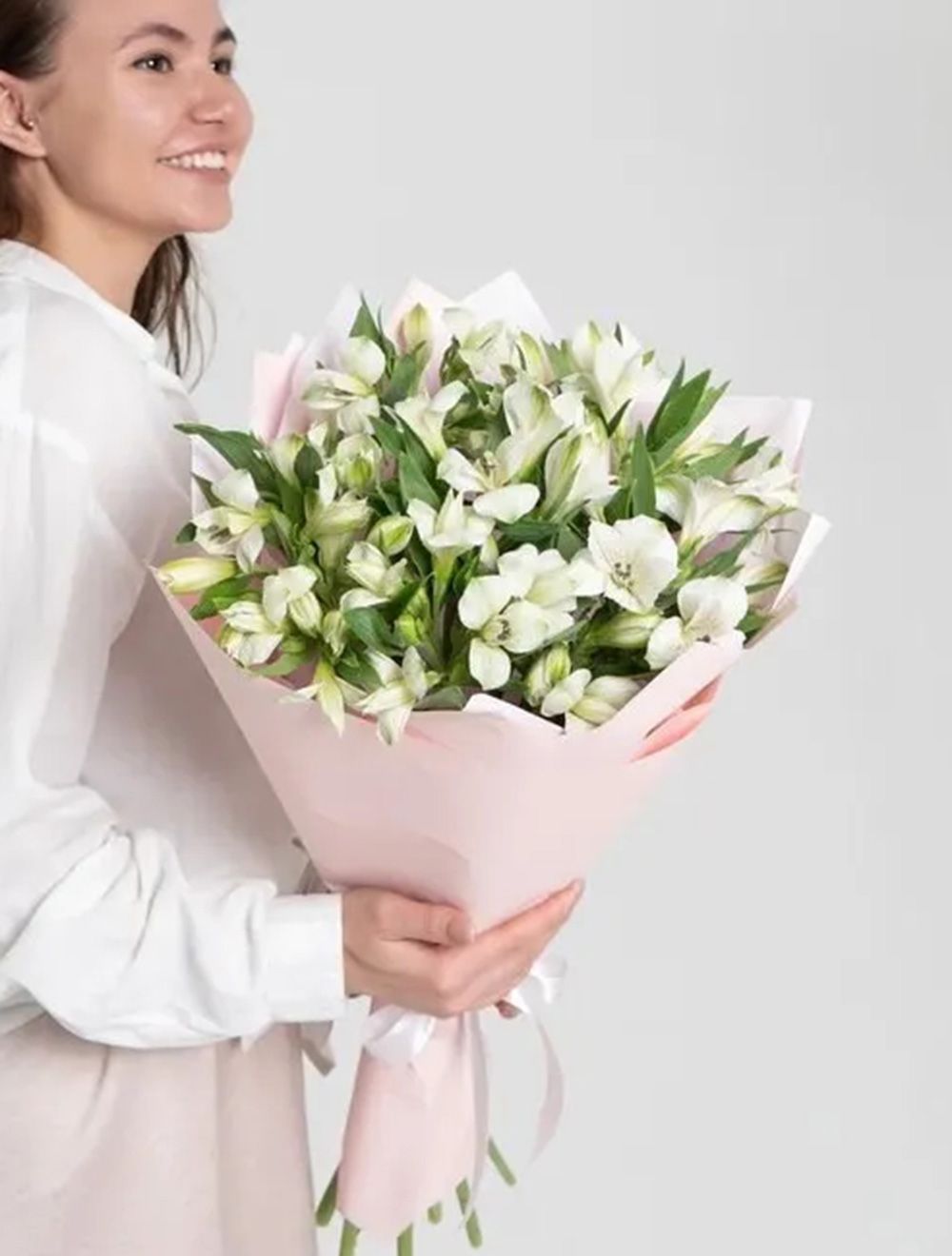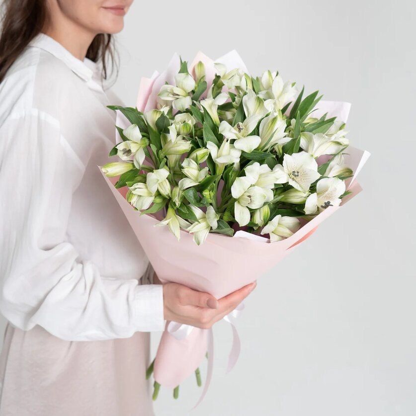 Состав: альстромерия белая - 11 шт, дизайнерская упаковка. -