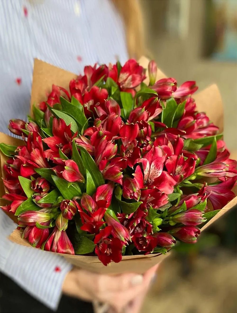 Состав: альстромерия красная - 11 шт, дизайнерская упаковка.