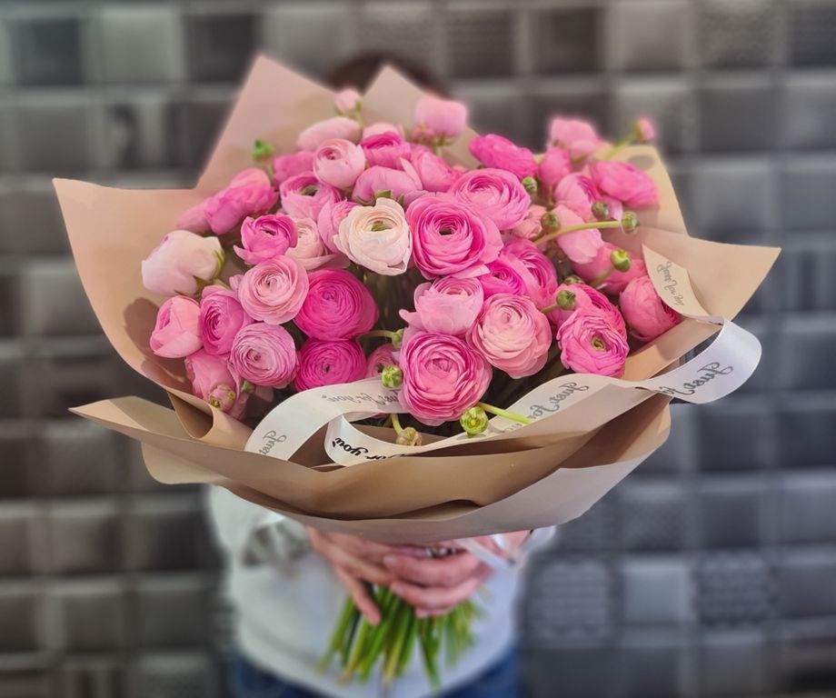 Состав: Ранункулес - 45 шт, Оформление, Лента.